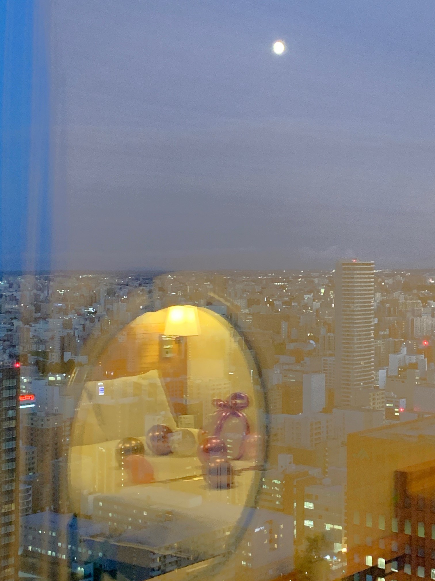 装飾が完成し、お部屋を後にする頃、窓からは綺麗なお月さまが!