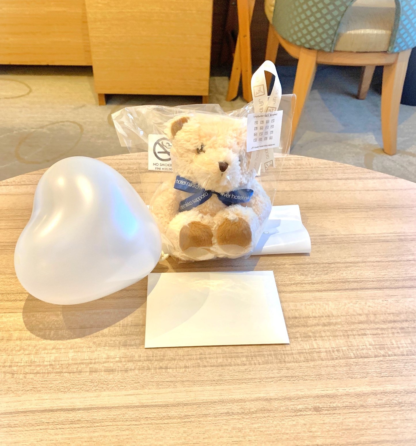 ソファのテーブルには、JRタワーホテル日航札幌様からの可愛いベア🐻