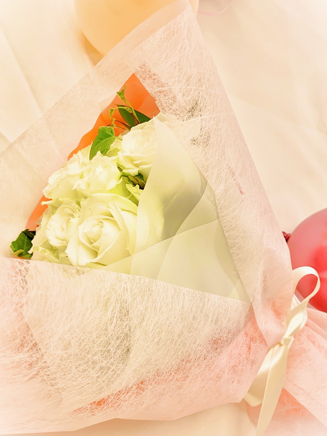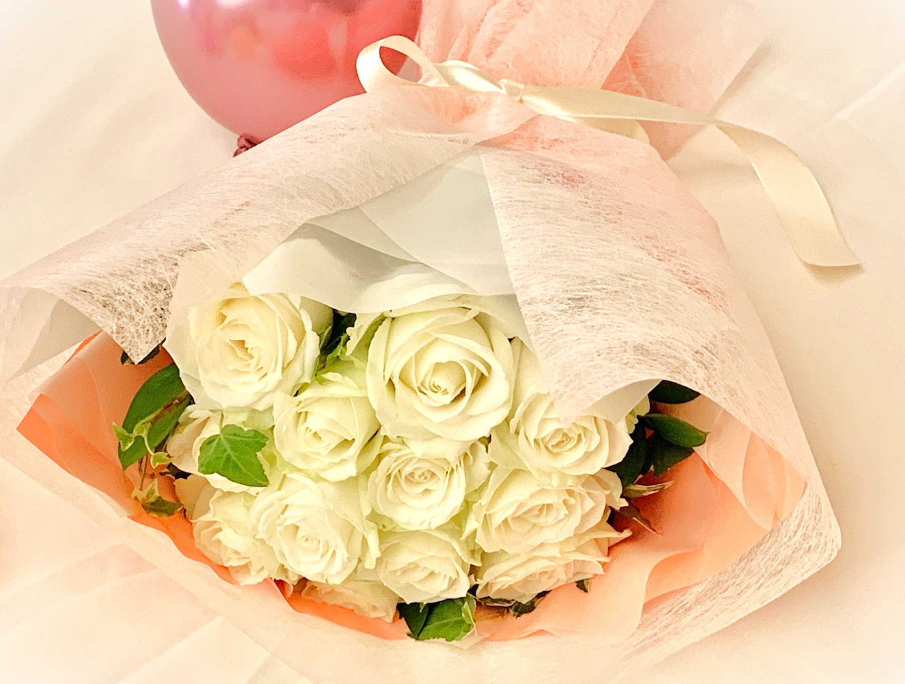 お客様が白いバラをご検討されていたので、「とっても素敵だと思います!」とお返事いたしました。