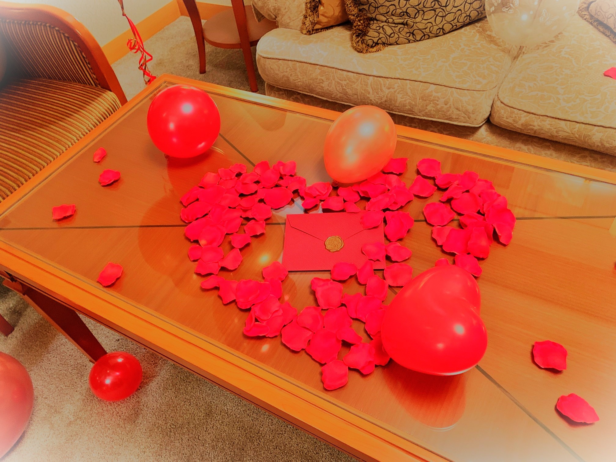 お客様達が準備の際テーブルの上の花びらはどかす必要がある為、花びらのボリュームは少な目にし
