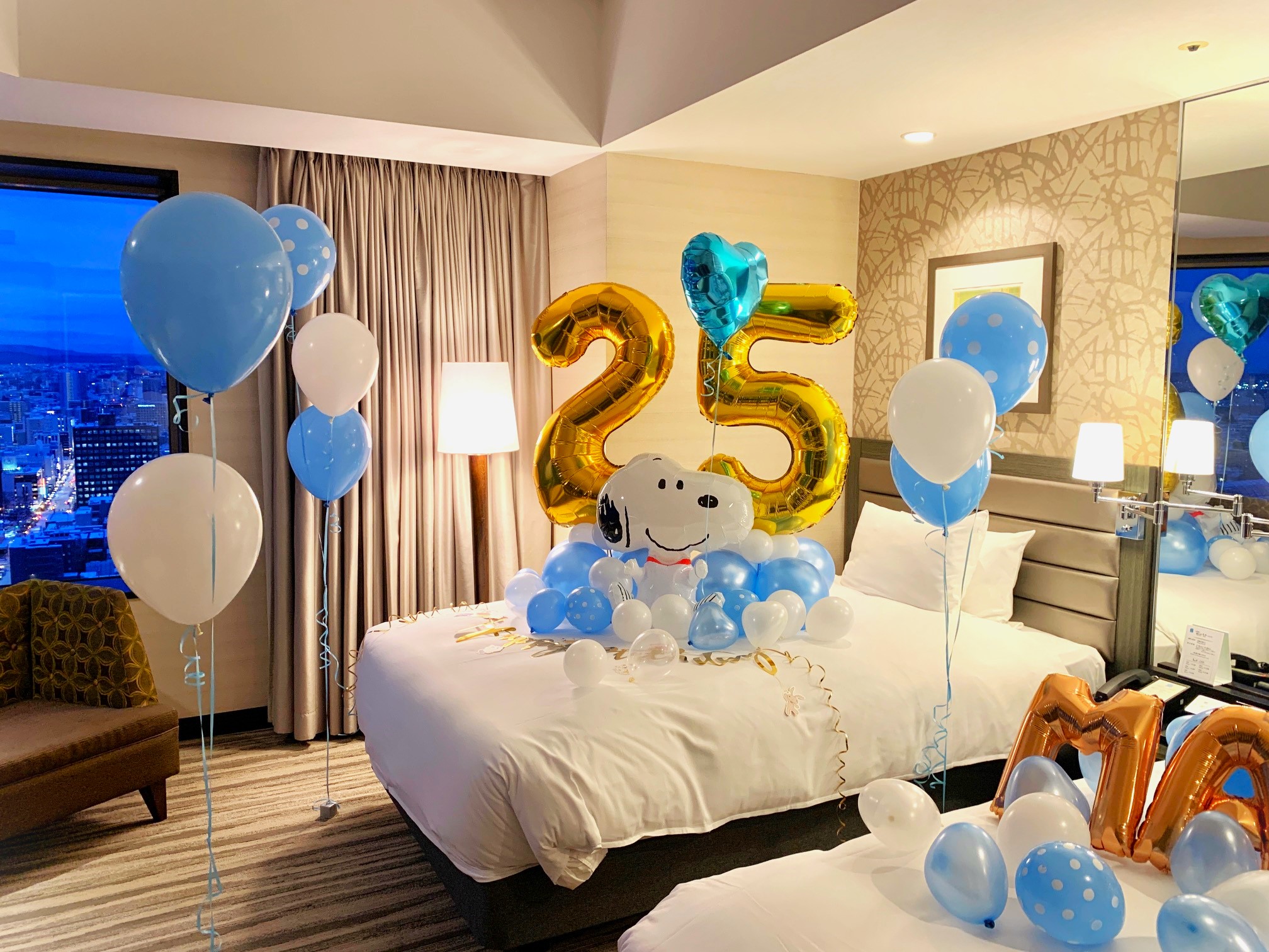 スヌーピーとクレヨンしんちゃんがお好きな彼女へのバースデーサプライズ🎉